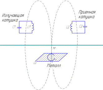 Аналогично, если в земле скрыт маркер, то возникнет взаимоиндуктивность Мм. При отсутствии металлического объекта, индукция L0 отсутствует, и взаимоиндуктивность будет иметь