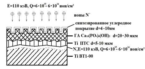ионами N+ с энергией 110 кэВ и интегральной дозой 6·1015÷6·1016