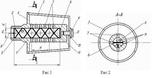 в центральному каналі 2 корпусу 1 пластиною 11, яка має гвинтову форму.