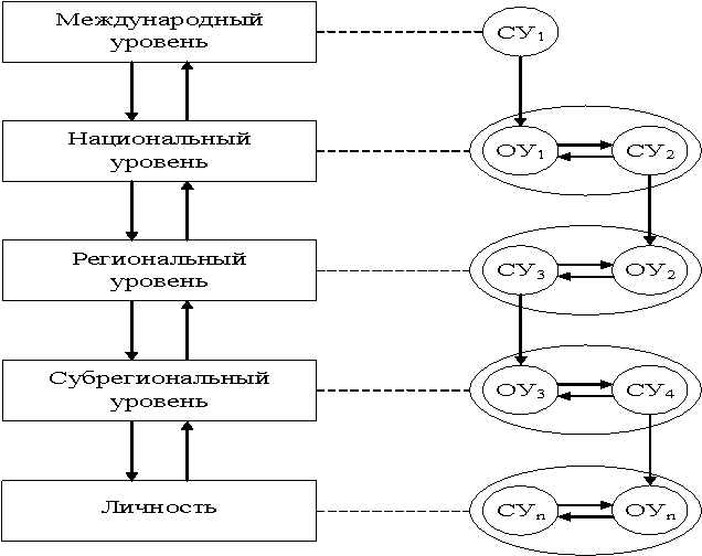 всех уровнях: от международного (общепланетарного) до уровня отдельной