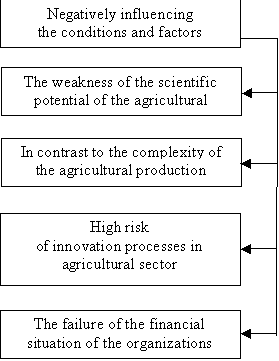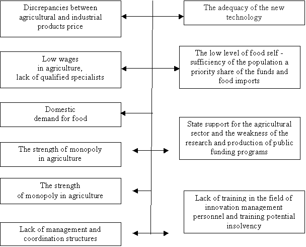 Agro-industrial complex analysis of the factors and conditions that contribute to the development of innovative and influencing them back (to develop innovative braking) and the positive impact (amplifying the intensity of innovation processes) can be divided into (Figure 1).