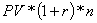 Где FV – будущая стоимость, PV – современная или текущая стоимость, r – процентная ставка, n – срок проведения операции (количество периодов).
