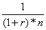 Дисконтный множитель при ставке r равной (1 + r)-n |