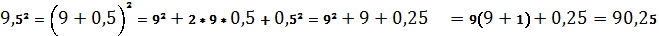 квадрат числа 11 равен 100 + (10+ 11)= 121;