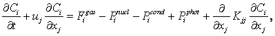 Faer- источники газовых примесей и аэрозолей; Pnucl,Pcond,Pcoag и Pphot – нелинейные операторы нуклеации,