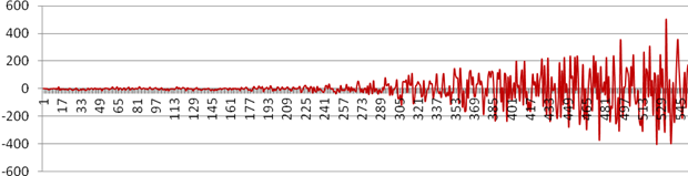 Чтобы привести данную последовательность к более привычному виду, отобразим её на координатной плоскости со значениями амплитуды на оси Y и некоторой временной единицей на оси X (Рис.2).