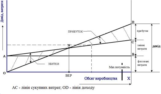продукції, здійснюється з використанням графіку беззбитковості, який представлений