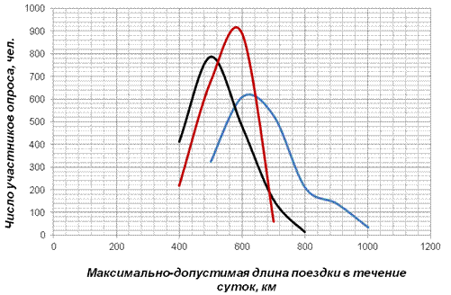 суточной поездки ответили 325 водителей (17,61 %) – до 500 км, 610