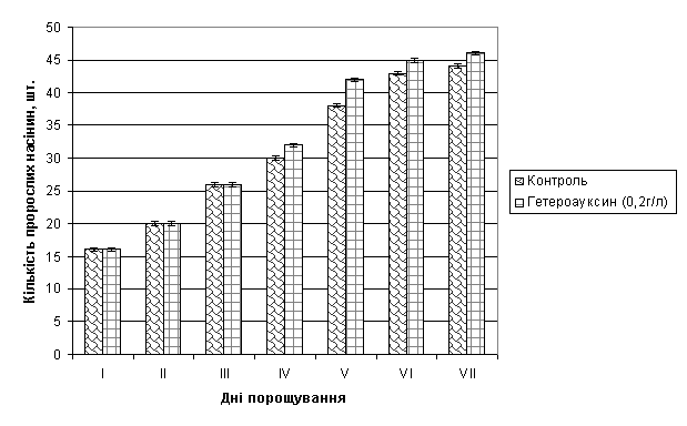 за контроль. Застосування гетероауксину призводило до підвищення схожості