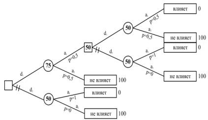 последствий, равное 0,5 · 100 + 0,5 · 0 = = 50. Таким образом, в данном