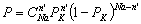 У результаті перемноження ймовірностей стану кожної ланки отримана ймовірність загального стану системи, яка за певних умов підпорядковується біномінальної закону розподілу: