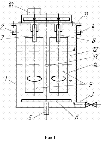 його осі два вала з перемішуючими лопатками, привод і аератор, згідно з пропонуємою