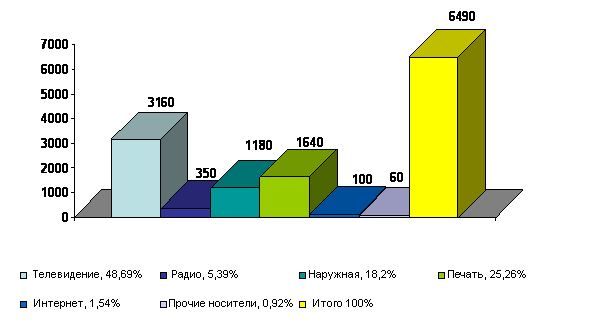 млн. долларов США или 1,54% от общего объема рекламы (см. Диаграмму