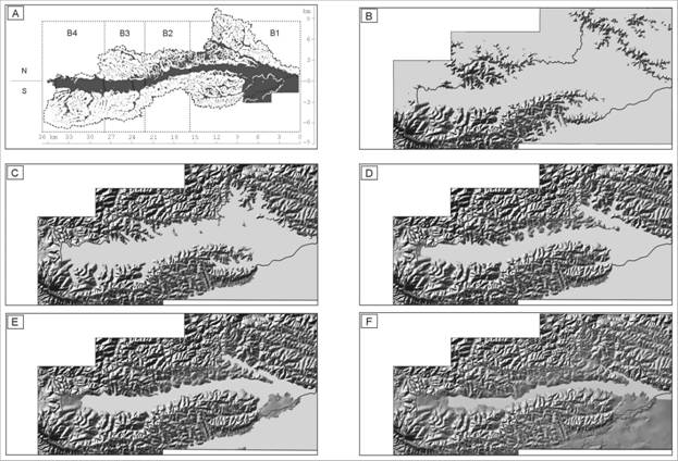 river basin. Simulation of surfaces of the recognized terraces, Old Quaternary: