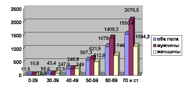 период всех возрастов прирост у мужчин на 63 %, у женщин на 49,7%.