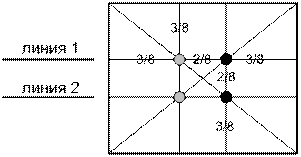 четыре, и расположены они на расстоянии 3/8 и 5/8 от соответствующих краев