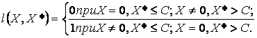 равна единице при ошибочном распознавании, т.е. когда Х≠0, Х*≤C или Х*>C, X=0: