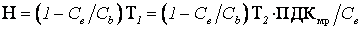 начальная и конечная концентрации загрязнителя, кг/м3.