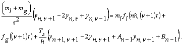 В[n]:=((Mg+Mh)/Tau2*(2*Yt[n]-(Yp[n])+Mh* Fxt*(n*Hx,