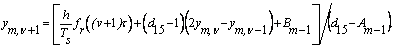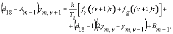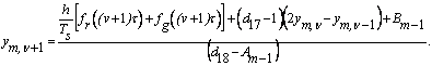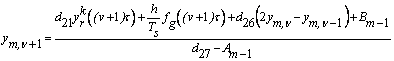 Y[m]:=(D21*Yrk(Т)+Hx/Ts*Fg(Т)+D26*(2*Yt[m]-Yp[m])+В[m-1])/(D27-A[m-1])