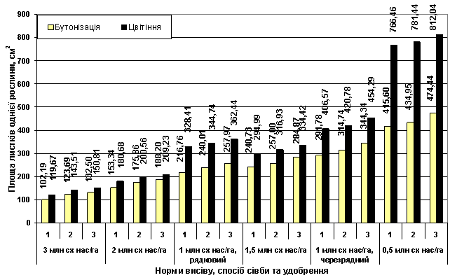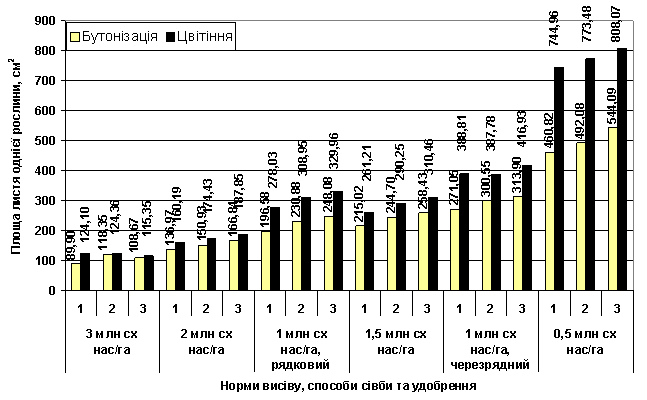 площі листків однієї рослини в посіві, а зниження норми понад 1,5 млн шт.