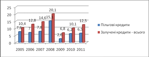 Більш детально динаміку залучених та пільгових кредитів