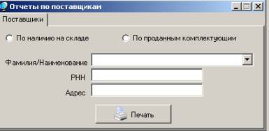 окно отчета по поставщику
