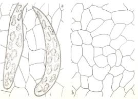 Рис.4. а) Эпидермис чашелистика; b) Эпидермис лепестков Astragalus Рис.5. А, В) Волоски чашелистика; ´ 100