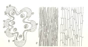 Рис.6. 1) Верхный эпидермис листа Astragalus bungeanus; ´ 300 Рис. 7. 1) Поперечный срез