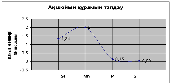 шойынның құрамында Si – 1,34% , Mn – 2, 0%, P -