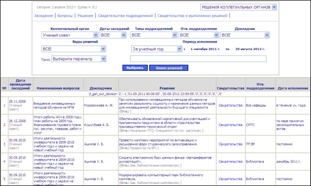 системы является систематизация всех решений связанных с заседаниями Ученого