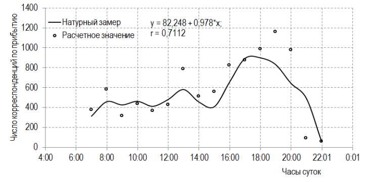 числа корреспонденций по часам суток.