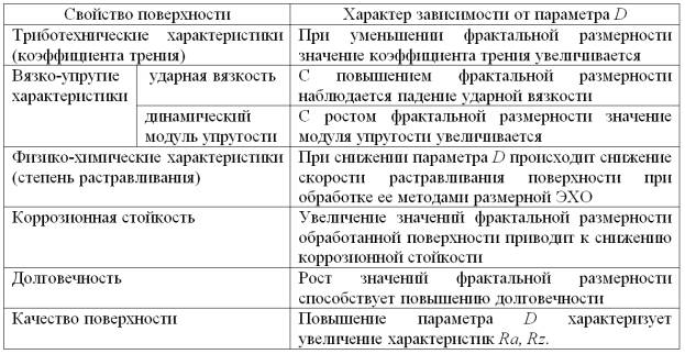 размерности и свойств поверхности, можно выделить характер корреляции для каждого случая (таблица 1).