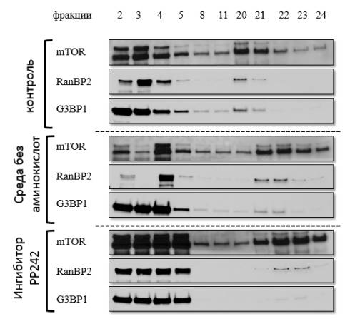 фракциях, что говорит о важном значении mTOR в процессе транспорта веществ из цитоплазмы в ядро и вовлечение