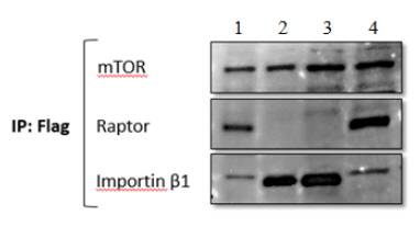 β1, 3 – flag-Importin β1, 4 – flag-Raptor).