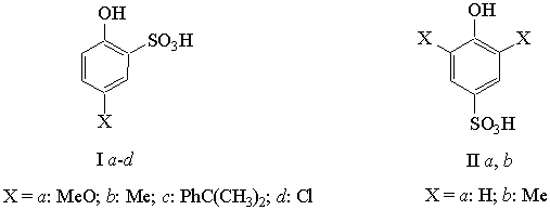 проверки выдвинутой гипотезы мы синтезировали ряд индивидуальных орто- и пара-фенолсульфокислот, поскольку в условиях процесса происходит