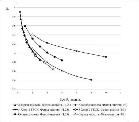 Зависимость функции кислотности хлорной, серной