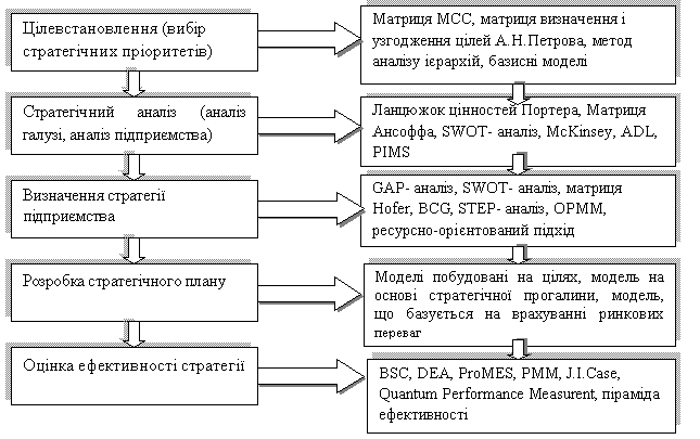 моделей, які застосовують в стратегічному плануванні на різних його етапах.