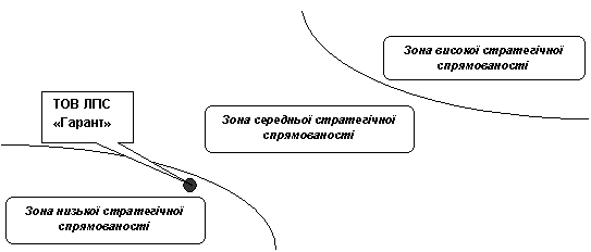 ТОВ ЛПС «Гарант» належить до зони низької стратегічної спрямованості конкурентного