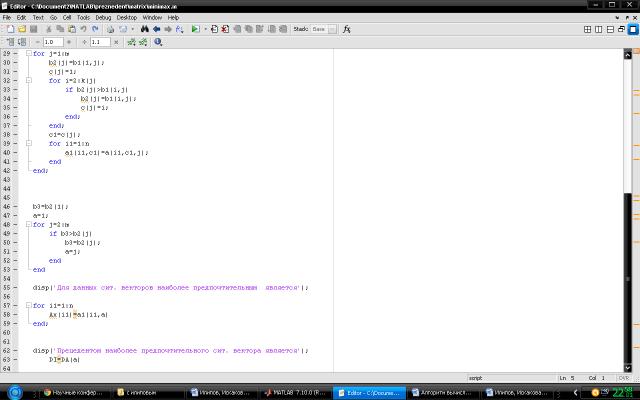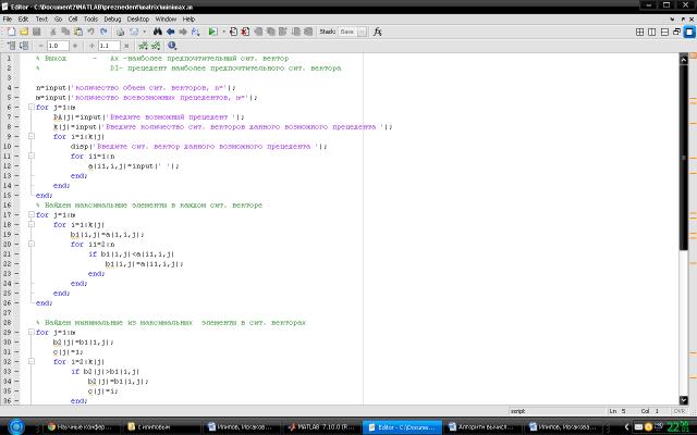 Рис. 1. Алгоритмизированная программа в системе Matlab для выбора прецедента по методу Максимин при