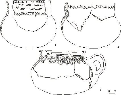 посуда из Староромашкино. 1 – ППК (VIIгр.); 2 – VIIIгр.; 3 – XIIIгр. типа “джукетау”