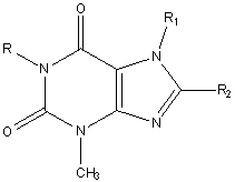 Рис. 1 Производные 1-R-7-R1-8-R2-3-метил-1Н-пурин-2,6(3Н,7Н)-диона