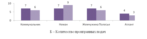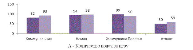 игры – с командой «Неман». Наименьшее количество подач пришлось в соревнованиях