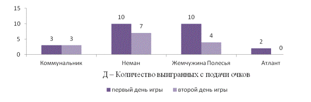 выигранных с подач очков наблюдается в игре с командами «Неман» и «Жемчужина Полесья» в первые дни игры.