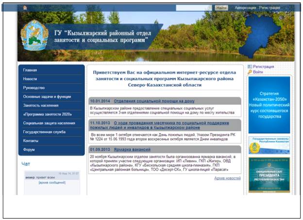 сайта «Кызылжарского отдела занятости и социальных программ»».