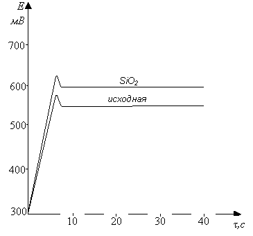 кислорода составляет ~550 мВ (потенциограмма № 1). При вводе в расплав кварцитовой ячейки фильтра значение ЭДС, по сравнению с
