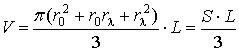 имеет форму усеченного конуса, определим выражение его объема