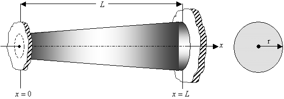 защемленного обоими концами стержня переменного сечения и ограниченной длины, в