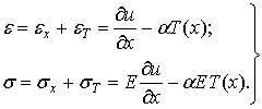 распределения температурного составляющих деформаций и напряжений