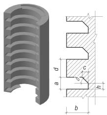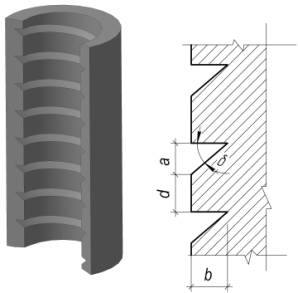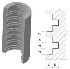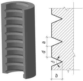 Рис. 1 Корпус вертикального винтового конвейера, с прямоугольным профилем поперченного сечения рифлей. |